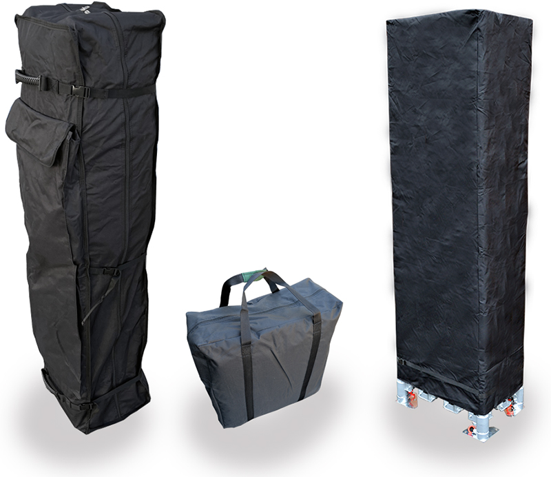 V případě RedX® PROFI a PROFI COMPOSITE stanů jsou konstrukce standardně vybaveny i přepravním vakem na kolečkách. Konstrukce RedX®PROFI PLUS, PROFI EXTREME a PROFI EXTREME COMPOSITE jsou standardně vybaveny jednoduchým transportním vakem, který chrání konstrukci, i když je složena se střechou stále na konstrukci nasazenou. S bočnicemi a střechami jsou dodávány samostatné transportní tašky s úchyty pro snadnou manipulaci. |